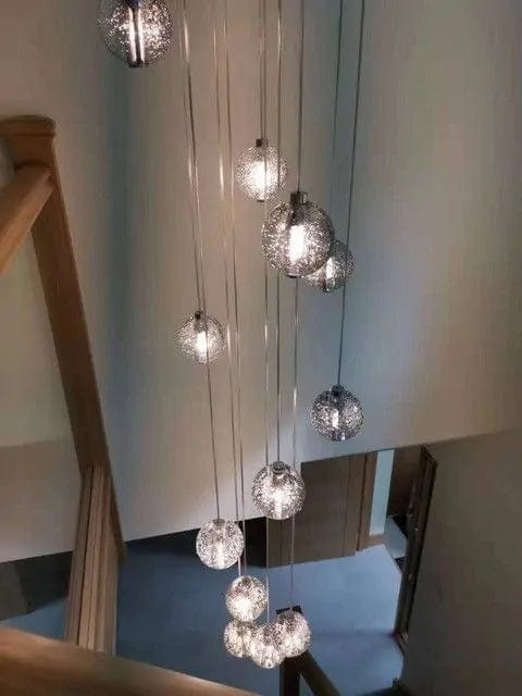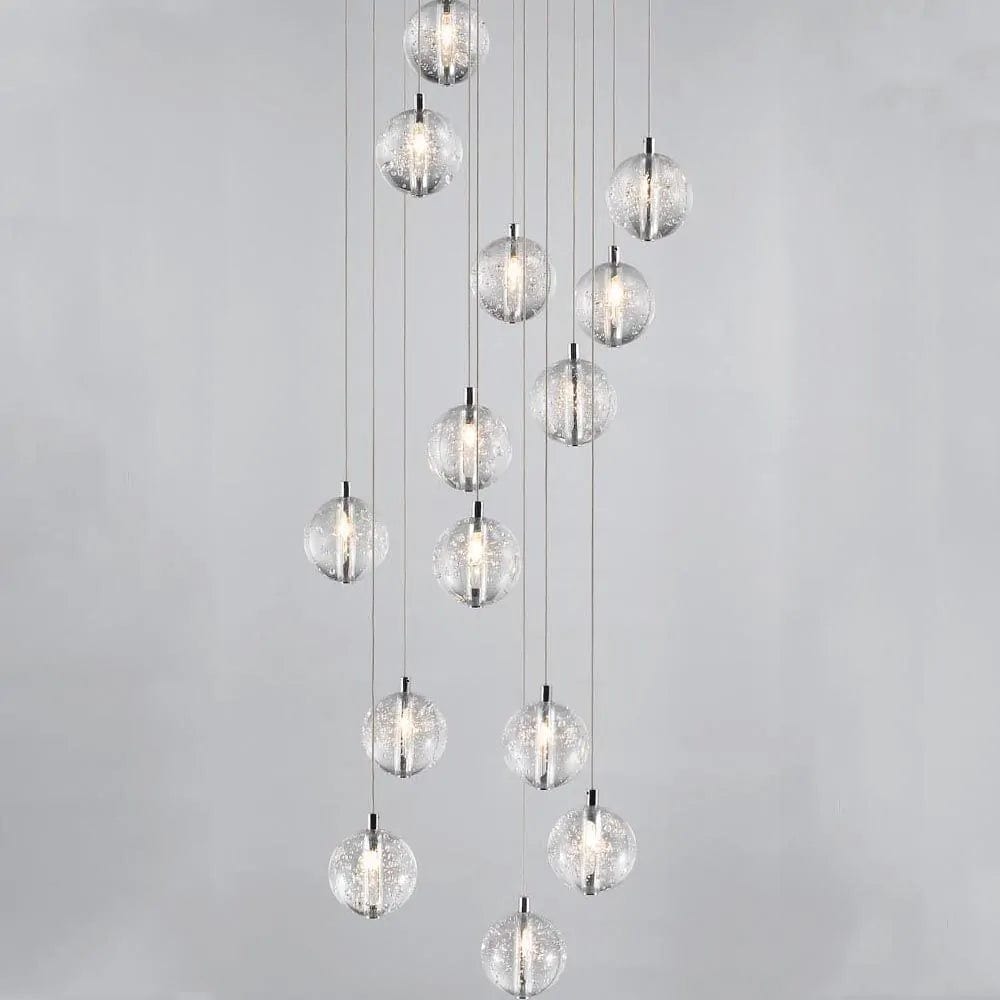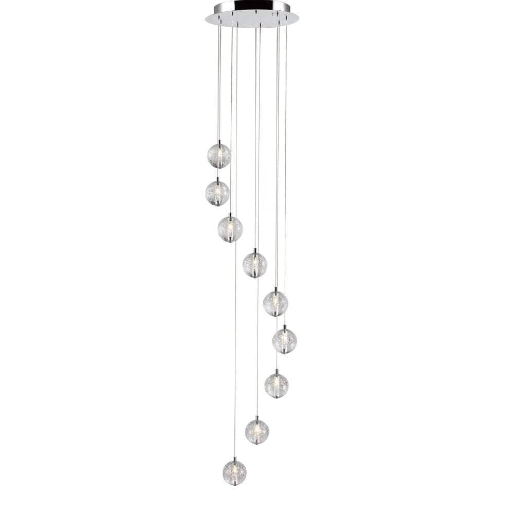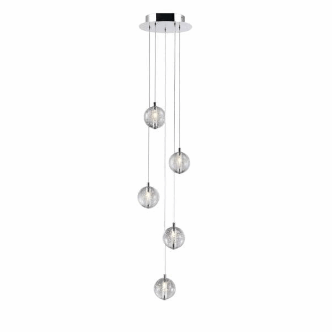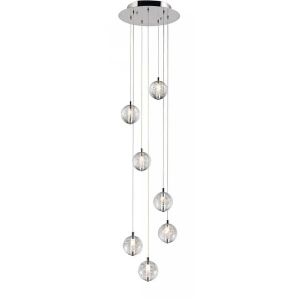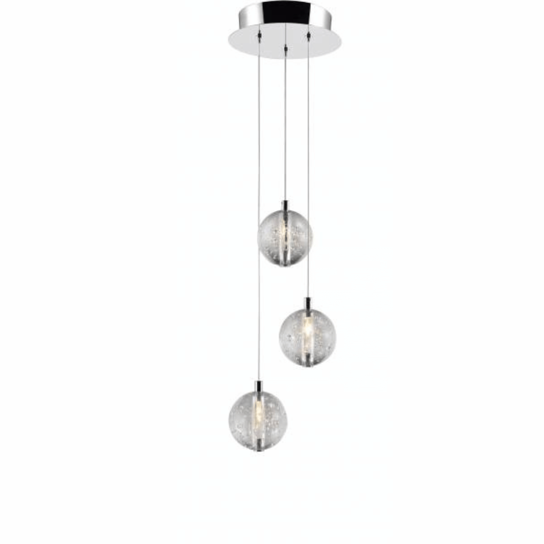 The Avivo Bubble range features pendants, flush ceiling lights, wall light and table lamps all with individually beautifully styled glass spheres. Each sphere is unique because they contain hand injected air bubbles. The fittings are dimmable and use G9 LED lamps (3000k).