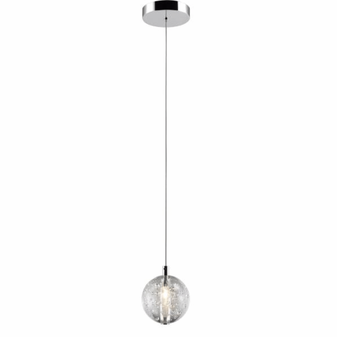 This single pendant from Avivo is part of the Bubbles range and features a circular ceiling plate which suspends a clear glass shade with hand injected bubbles. The shade fits around a G9 bulb and shines through the glass shade and highlights the bubble decoration while giving a wonderful cast of light within your home. Finished in chrome, the pendant would suit a range of contemporary decors within your home and would look stunning in sets over dining tables. Height adjustable at any time.